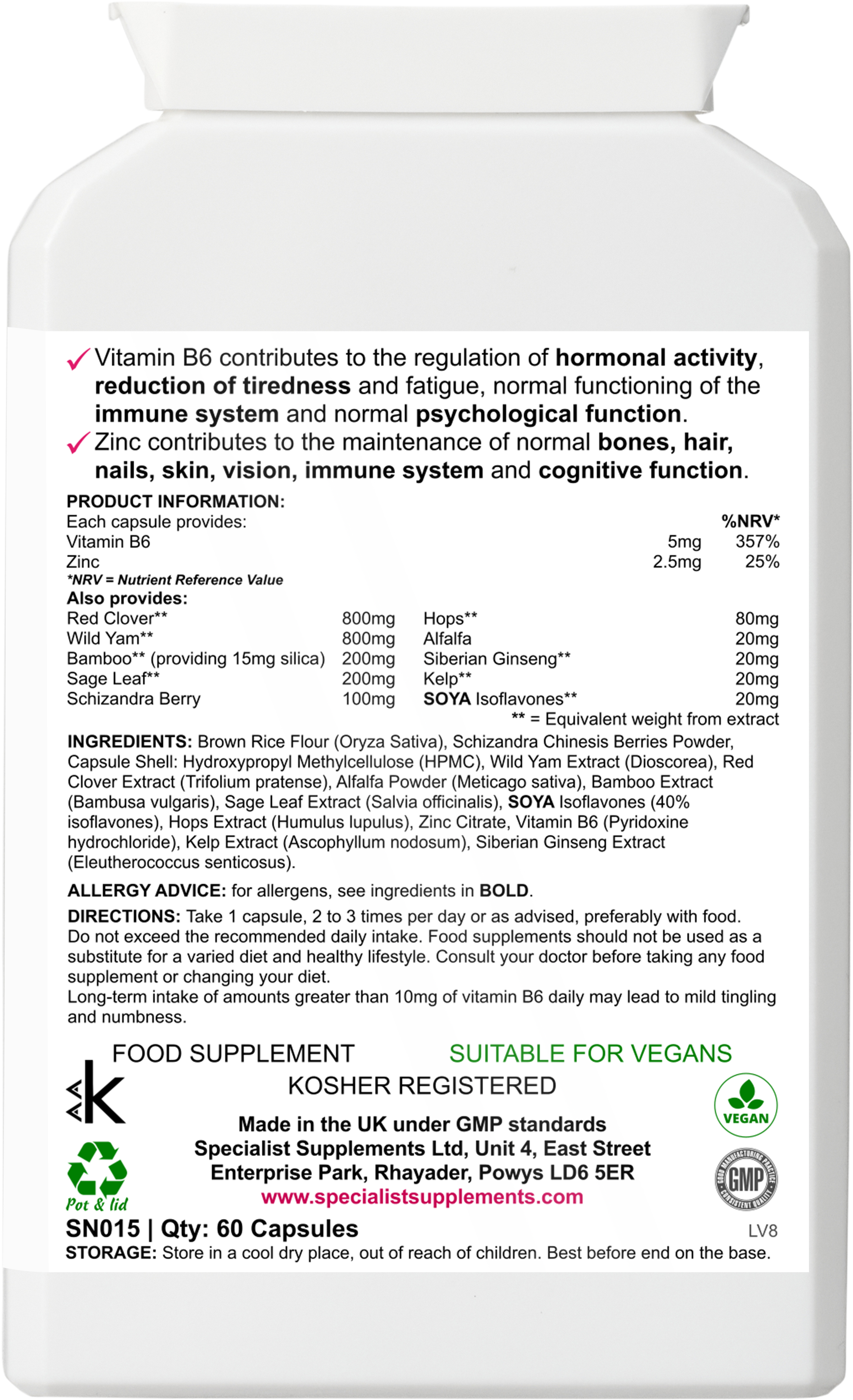 It contains a specially formulated blend of herbal ingredients and other key nutrients to support women through difficult monthly cycles, as well as during perimenopause and the menopause.
